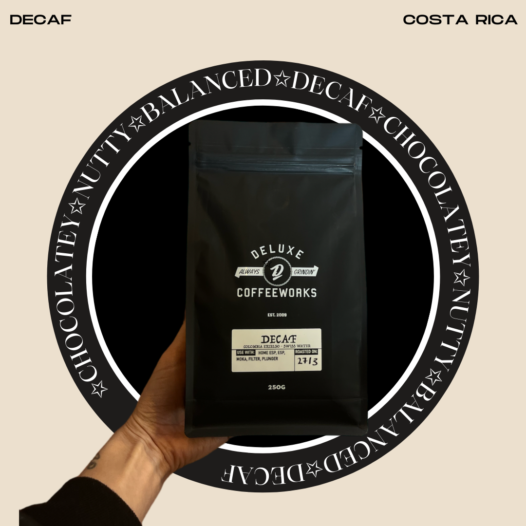 Our Decaf coffee, from Costa Rica. Smooth, easy drinking that doesn’t make you $h1T yourself!